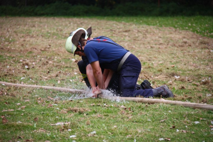 Nach einem gutem Start unser Mannschaft holte uns das Pech ein. Der Schlauch des rechten Strahlrohres kam unter die B-Leitung.